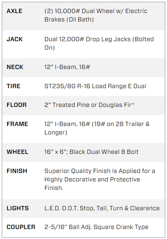 • Axles: (2) 10,000 lb dual-wheel oil-bath brake axles