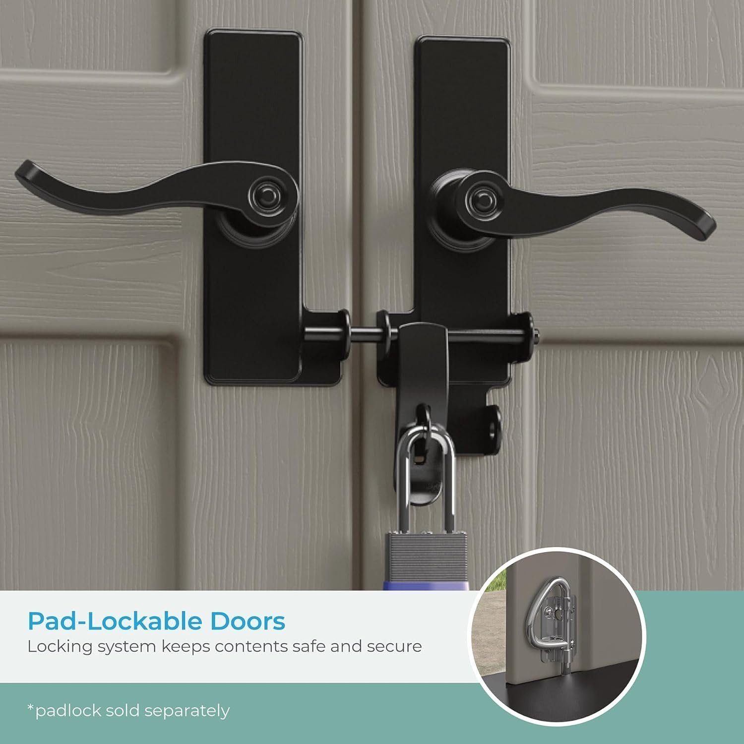 - LOCKABLE DOORS: Features a padlock hasp that allows doors to lock securely