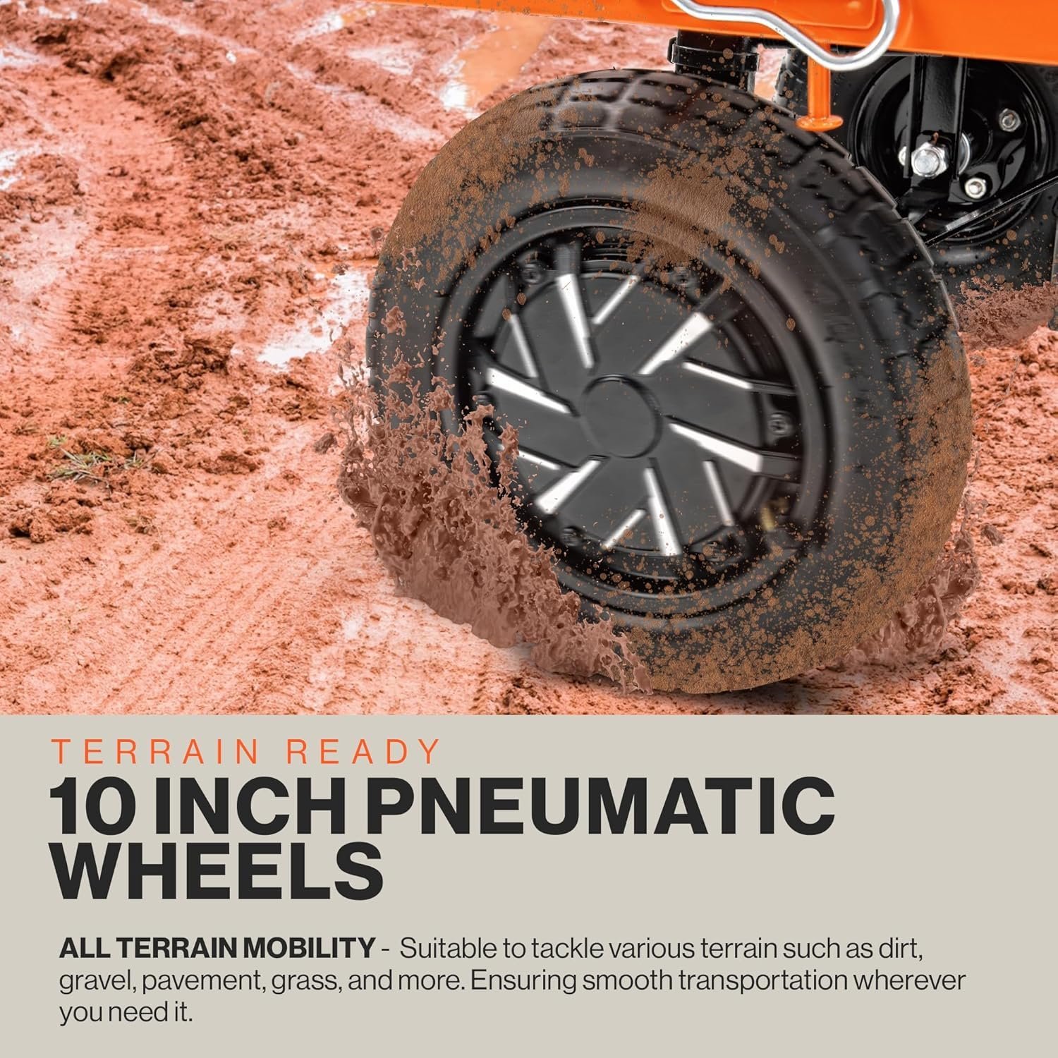 - ALL-TERRAIN WHEELS: Features durable 10-inch pneumatic wheels, ensuring smooth operation over any type of landscape or terrain.
