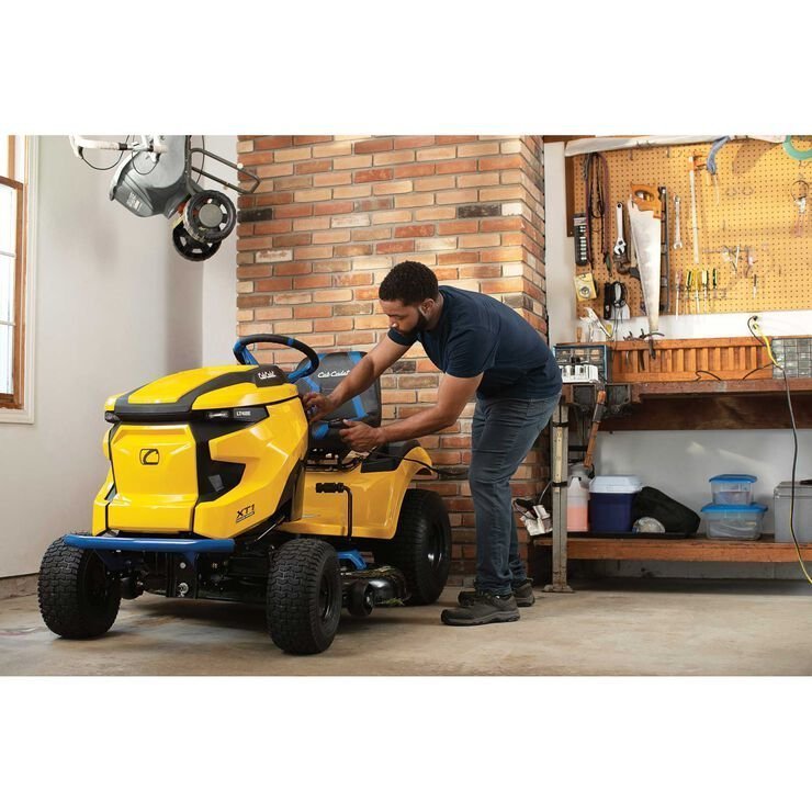 The Cub Cadet® Enduro Series XT1 LT42E 42-in. 56V MAX* Riding Lawn Mower cuts up to 3.5 acres, or 1.5 hours, on a single charge. Minimize maintenance with no engine, oil changes, belts, or gas. Lithium-ion battery technology allows for consistent, high-powered performance. Ride comfortably with a 15-in. Cub Comfort deluxe high-back seat.