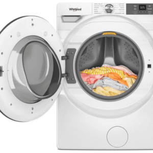 The Whirlpool WTW5057LW is a versatile 4.7 – 4.8 Cu. Ft. Top Load Washer featuring a 2-in-1 Removable Agitator that can be taken out for added space. The washer offers a built-in water faucet for stain pretreatment and a Deep Water Wash Option. With an Easy-View™ Slow Close Glass Lid, it accommodates large loads. This washer reflects Whirlpool’s legacy as an American company for over a century. It weighs 120 pounds and measures Depth: 27”, Height: 41 1/2”, Width: 27 3/4”.